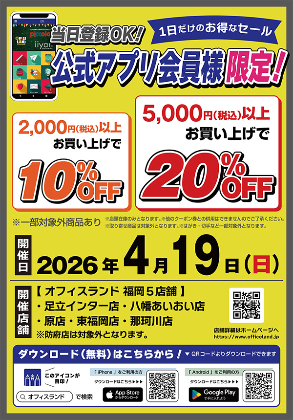 株式会社 オフィスランド 株式会社オフィスランドは文具・事務用品店舗「オフィスランド」「いいやんステーショナリーズ」「ピコロ」事業を通して、お客様に文具の楽しさ・おもしろさを提供いたします。ここに行けば何とかなる!何かある!と感じてもらえる店作りを目指しています。 2024年06月26日 オフィスランド公式アプリ 2023年10月11日 OFFICELANDメルカリショップ 2026年04月01日 【公式アプリ会員様限定】1日だけのお得なセール/... 2026年01月19日 クーポン配布終了のお知らせ 2024年09月01日 【オフィスランド公式アプリ】スタンプカード開始の... 店舗案内 会社概要 お知らせ お問合せ お知らせ すべて見る 2024年06月26日オフィスランド公式アプリ 2023年10月11日OFFICELANDメルカリショップ 2026年04月01日【公式アプリ会員様限定】1日だけのお得なセール/4月 2026年01月19日クーポン配布終了のお知らせ 2024年09月01日【オフィスランド公式アプリ】スタンプカード開始のご案内 エックス